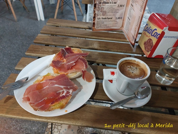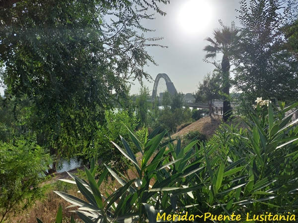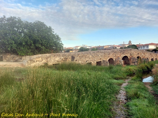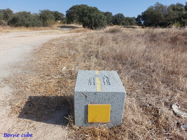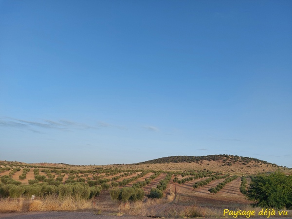 Après une bonne nuit, un petit déjeuner local à 2€60, et forte de mon repérage de la veille, j’ai allègrement pris la variante Via de la Plata par le barrage de Proserpine. Environ 4 km de douce montée constante pour sortir de Mérida sous une relative fraîcheur et sur une piste partagée piétons-cyclistes en excellent état. Je n’ai pas regretté. Puis cheminement avec parfois quelques petits « raidillons » jusqu’à El Carrascalejo où j’ai pu remplir mes bouteilles. Il fait très chaud et je fais beaucoup de pauses même à 1km de l’arrivée.