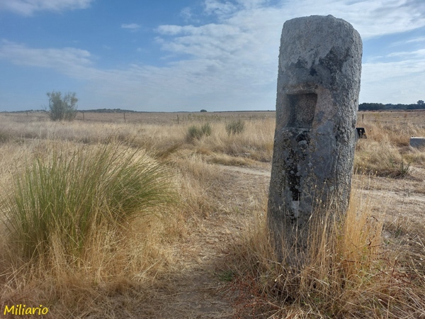 Rude journée ! Étape prévue de 26km et en fait 29. Je suis épuisée. Suis partie à la frontale à 6h30 et tout allait bien jusqu’au moment où il n’y a plus eu de balise. Même avec le guide super bien fait dont je photographie l’étape du jour, la veille, j’ai erré pendant 2 km. Christian, le pèlerin allemand rencontré hier a eu la même difficulté. L’étape aurait pu être bien sans cette errance, la chaleur (33°) et mon sac à dos. Beaucoup de vestiges romains : ponts, miliarios (espèces de bornes kilométriques romaines), puits etc., mais le tout dans un paysage à découvert, seulement agrémenté de quelques chênes verts et surtout de genêts chiches en ombre. J’ai aussi rencontré Jesu, un pèlerin espagnol avec qui je partage l’albergue ce soir. Comme il ne parle qu’espagnol, c’est un peu coton….