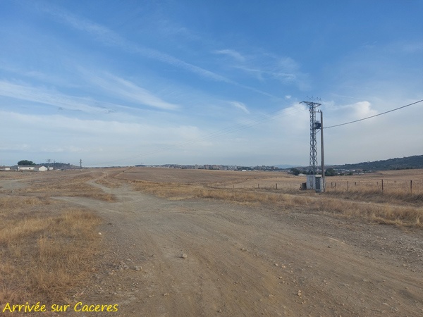 Partie à la frontale en laissant Jesu. Petit déjeuner à la tienda. Rien de bien remarquable : terres brûlées par le soleil, grandes étendues, chemin plutôt plat et sableux. Vers 10h et 11km plus tard, je suis montée visiter la vieille ville de Caceres. Vers 12h, avisant l’OT, je me suis renseignée sur l’éventualité d’un bus pour les 11km restants. Je m’en suis félicitée en suivant par la fenêtre, bien au frais et pour 1€50, la Via écrasée de soleil. À Casar, fin de l’étape, grosse déconvenue : c’était la feria juste sous les fenêtres de l’albergue!!! Insoutenable! La sono à fond, des Espagnols déchaînés jusqu’à 23h.