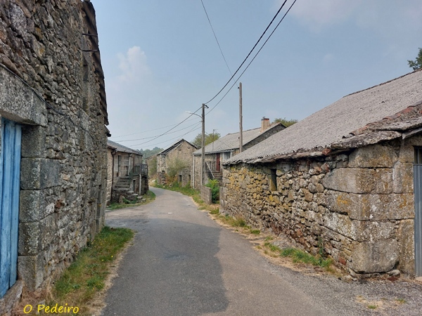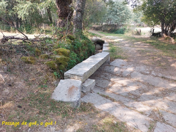 Descente en pente douce ou pas alternant avec quelques raidillons révélant de beaux paysages. Traversée de trois villages aux belles maisons typiques délabrées ou en cours de restauration. Les moellons de pierre sont impressionnants. D’ailleurs, toutes les pierres sont impressionnantes: en dalles ou en rondins sur le chemin, en plaques épaisses pour les nombreux gués qui enjambent les arroyos, en moellons pour les maisons et les ermita…